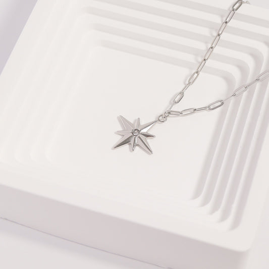 18K Gold PVD Stainless Steel CZ Compass Star Charm / PDL0205