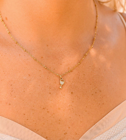 18K Gold PVD Stainless Steel CZ Wine Glass Charm / PDL0144