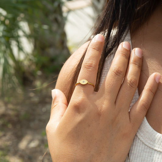 18K Gold PVD Stainless Steel CZ Stone Evil Eye Symbol Ring / ZRJ0004