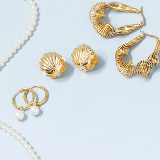 18K Gold PVD Stainless Steel Pearl Charm Huggie Hoop Earrings / ERJ0027