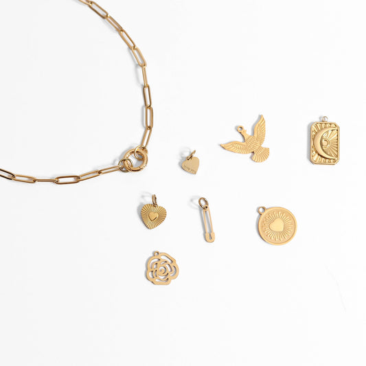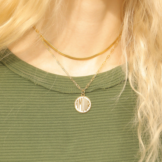18K Gold PVD Stainless Steel Round Amour Charm / PDL0236