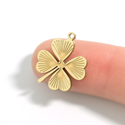 18K Gold PVD Stainless Steel Sunburst Four Leaf Clover Charm / PDL0007