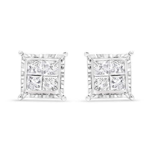 Ohrstecker aus Sterlingsilber mit 3/4 Karat Diamanten im gebogenen quadratischen Design