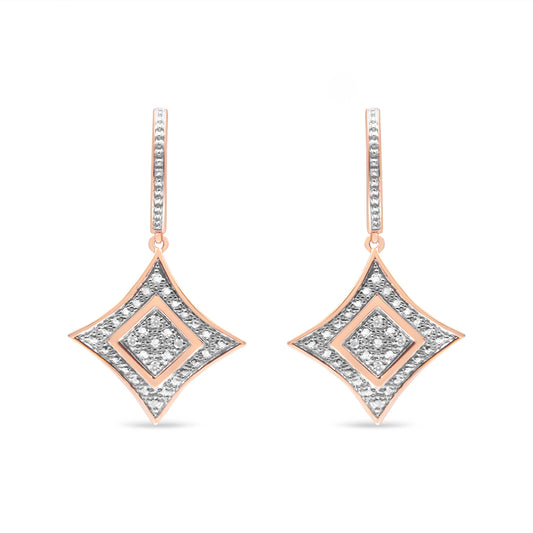 Roségold über silbernen Diamant-Akzent baumeln Rauten-Ohrringe
