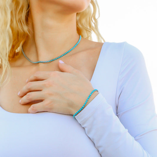 Stainless Steel Turquoise Rhinestone Tennis Chain Bracelet / TBR0005