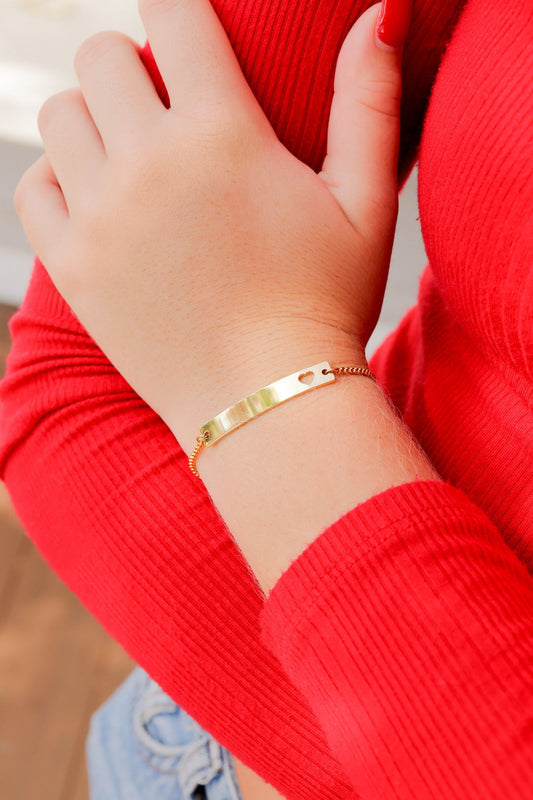 18K Gold PVD Stainless Steel Adjustable Curved Cutout Heart Blank Bar Bracelet / SBB0132