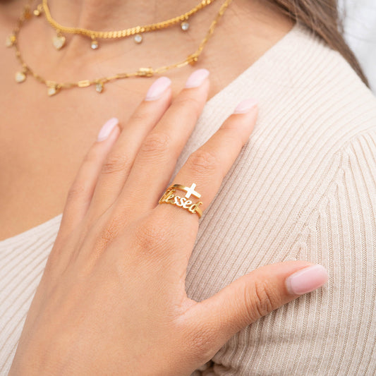 18K Gold PVD Stainless Steel Adjustable "Blessed" Ring / KSS0007