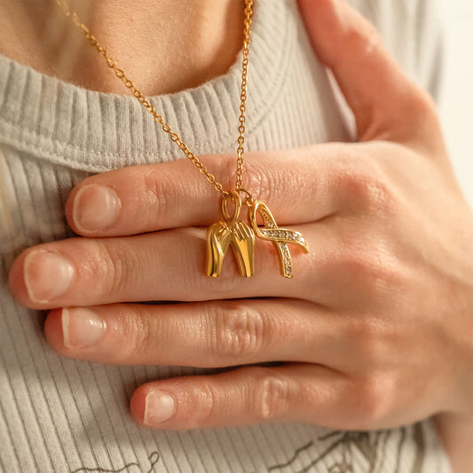 18K Gold PVD Stainless Steel Cancer Ribbon Charm / PDL0350