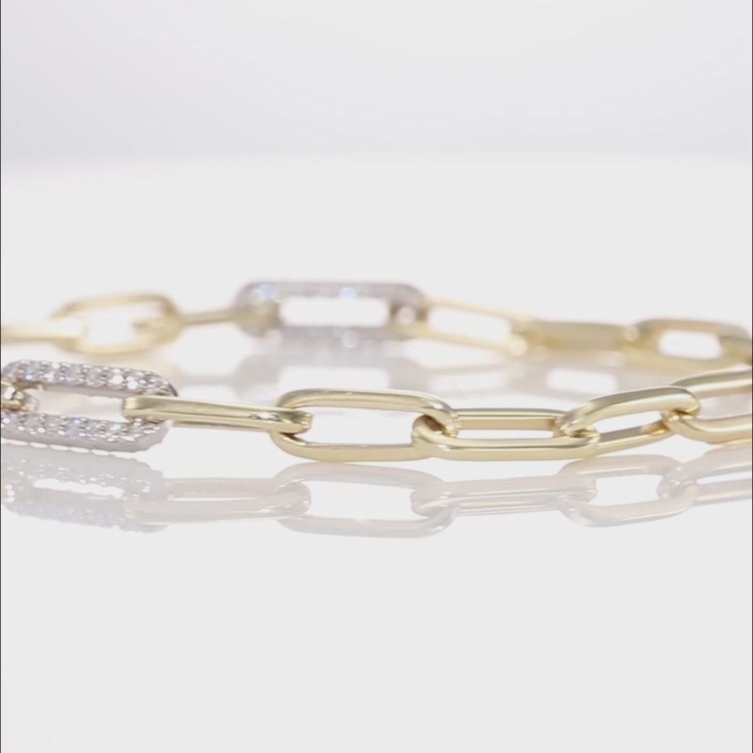 14K Büroklammer-Armband aus massivem Gold und Diamant