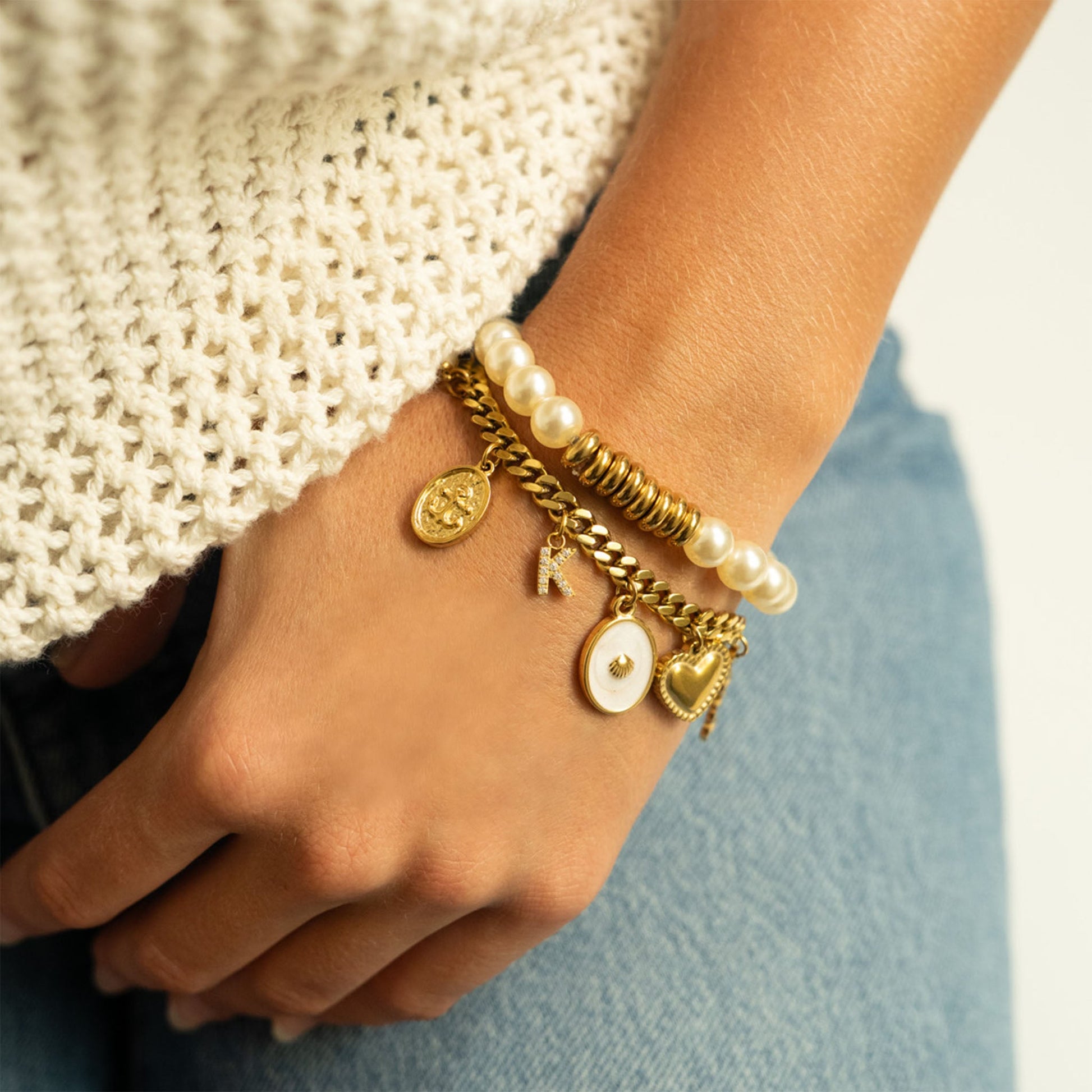 We use the process of PVD Coating our 18K Gold jewelry over 316L surgical grade stainless steel for a non-tarnish, hypoallergenic, polished finish that will hold up best to everyday wear and will never turn your customer's skin green.