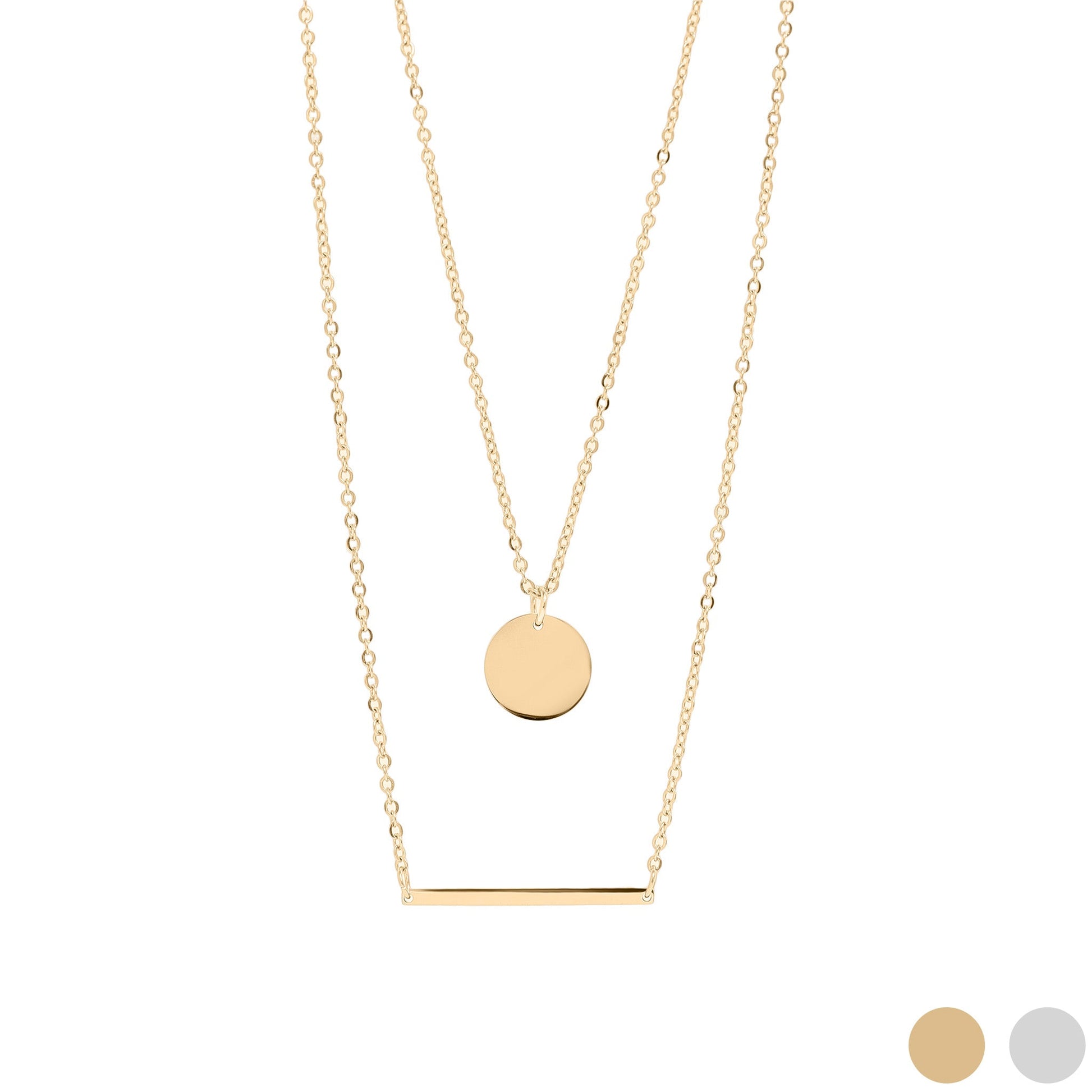 Looking for the best trending style that never goes out of season? Look no further than the stunning circle and bar pendant layered chain necklace!