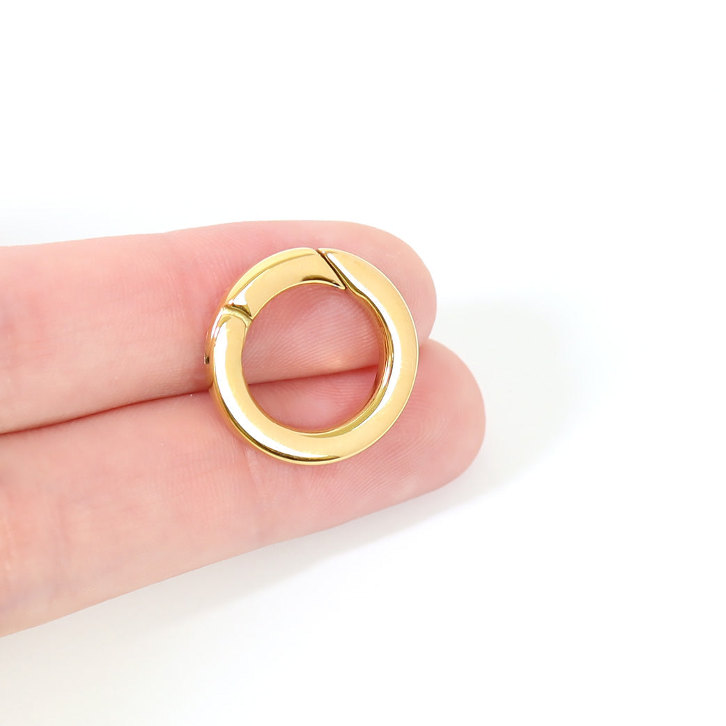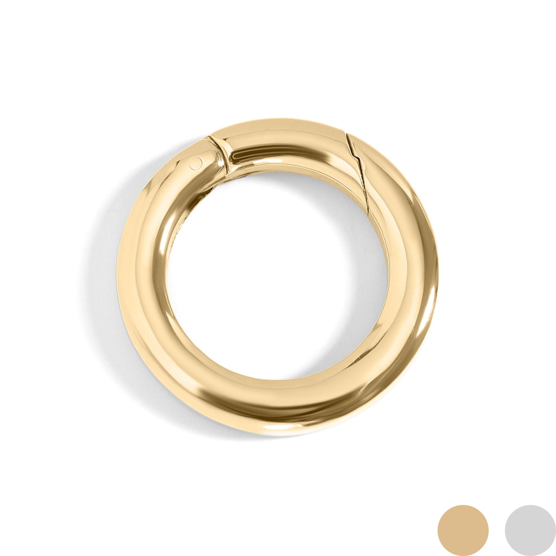 The Circle Carabiner Charm Clasp features a polished finish made of 316L stainless steel with an easy-to-open, secure spring clasp.