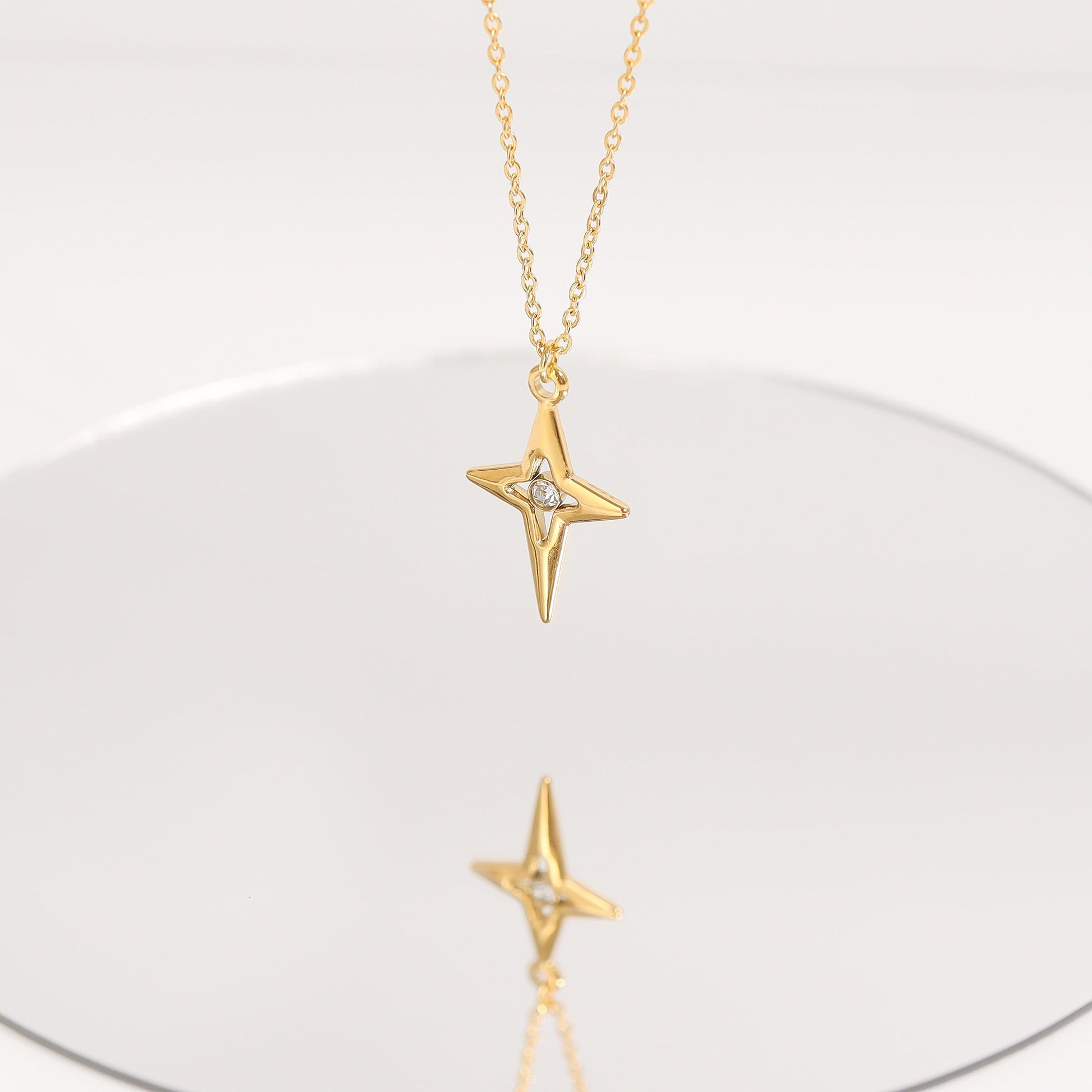 18K Gold PVD Stainless Steel Compass Star Charm / PDL0196