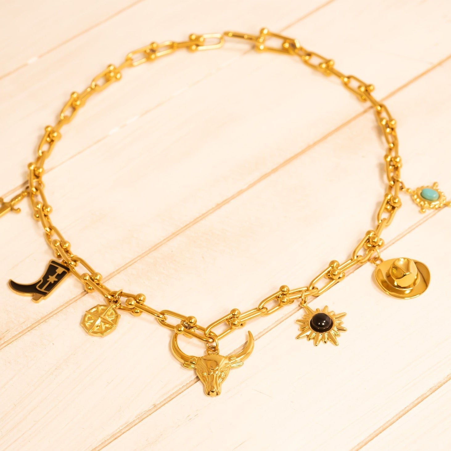 Saddle up in style with our Cowboy Hat Charm, the perfect symbol of adventure, freedom, and a love for the Wild West. Crafted from 18K Gold PVD Stainless Steel, this charm is made to last while adding a bold, rustic touch to any jewelry collection.