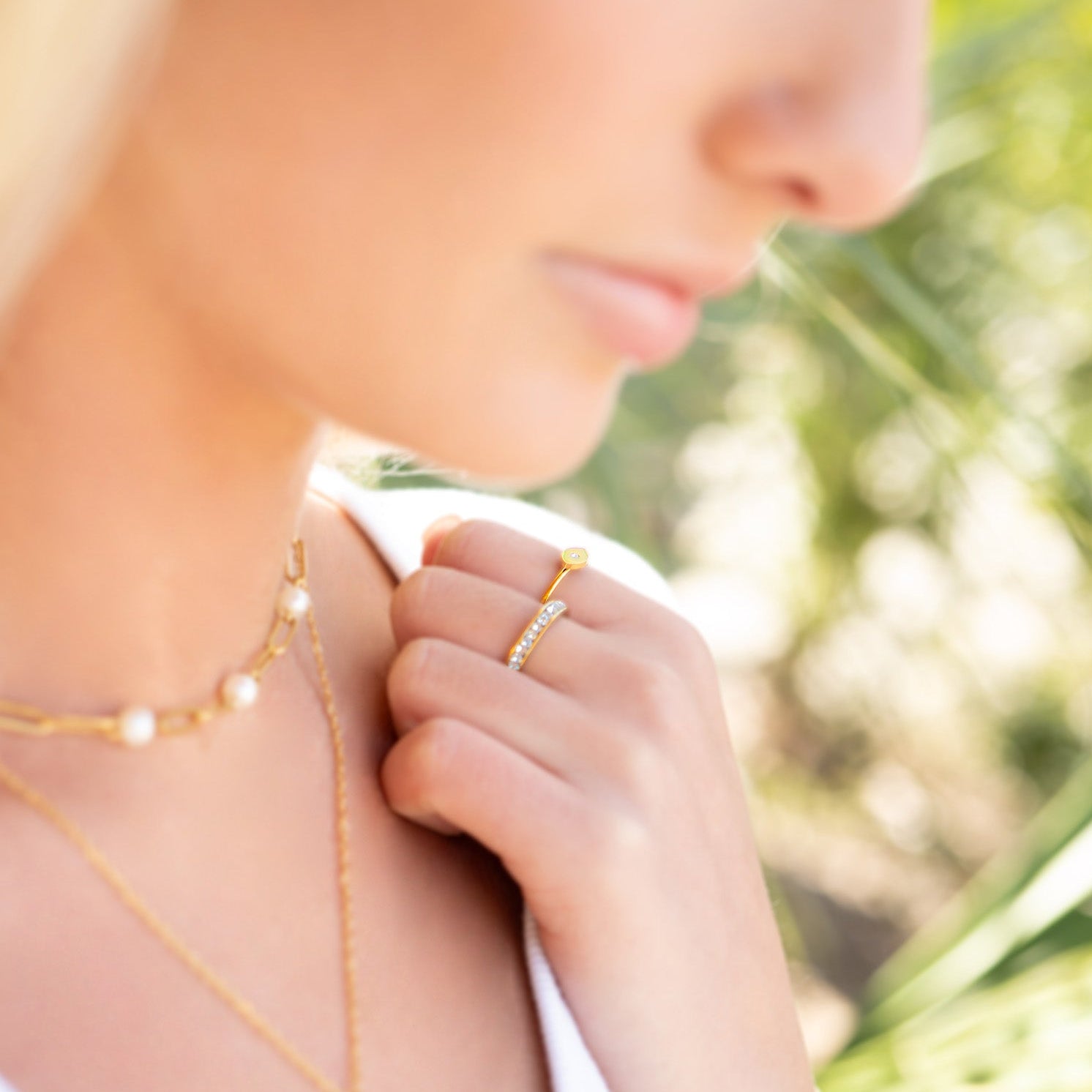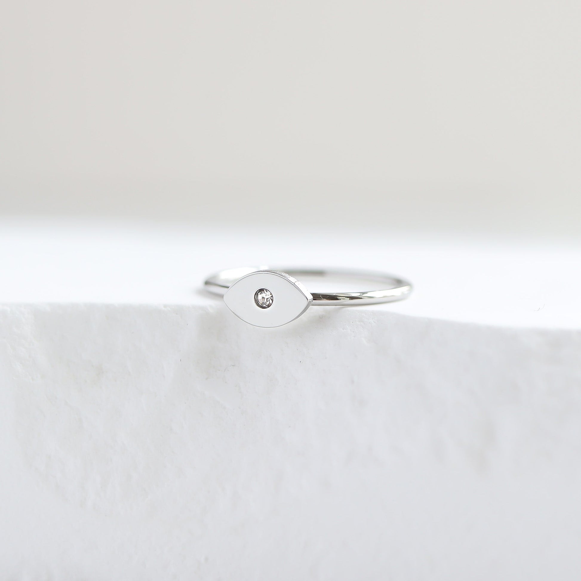 18K Gold PVD Stainless Steel CZ Stone Evil Eye Symbol Ring / ZRJ0004
