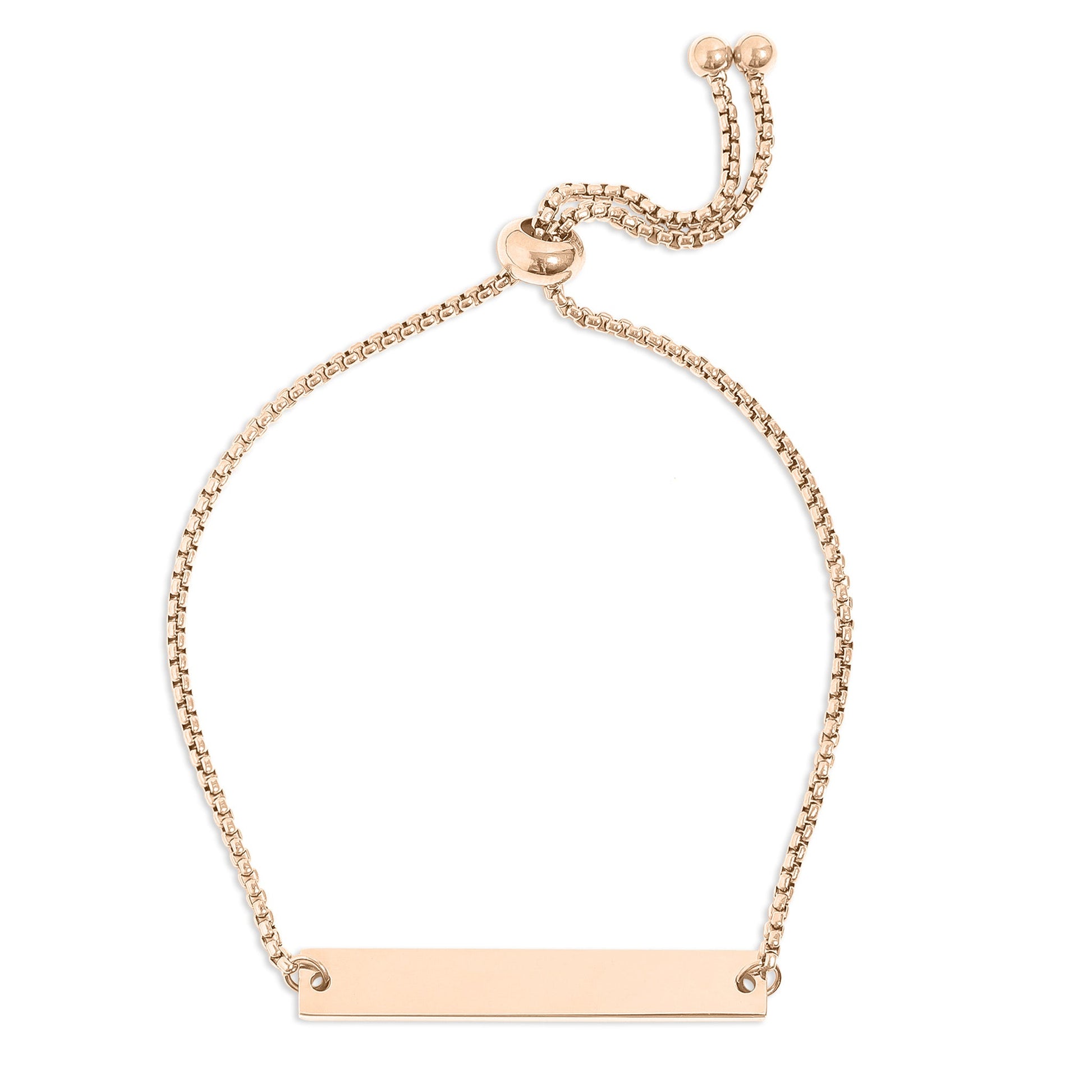Elevate your inventory with a piece that offers both sleek style and personal touch. This Flat Adjustable Bar Bracelet combines modern sophistication with versatile functionality, making it a standout addition to any jewelry collection. The bracelet can be engraved with a special message or name of your choice, making it a truly unique piece for anyone who wears it. Its minimalistic design is both fashionable and eye-catching, and its versatility enables it to coordinate with a variety of ensembles, from formal to relaxed. Moreover, its adjustable feature provides the ability to customize its size to the individual's wrist.