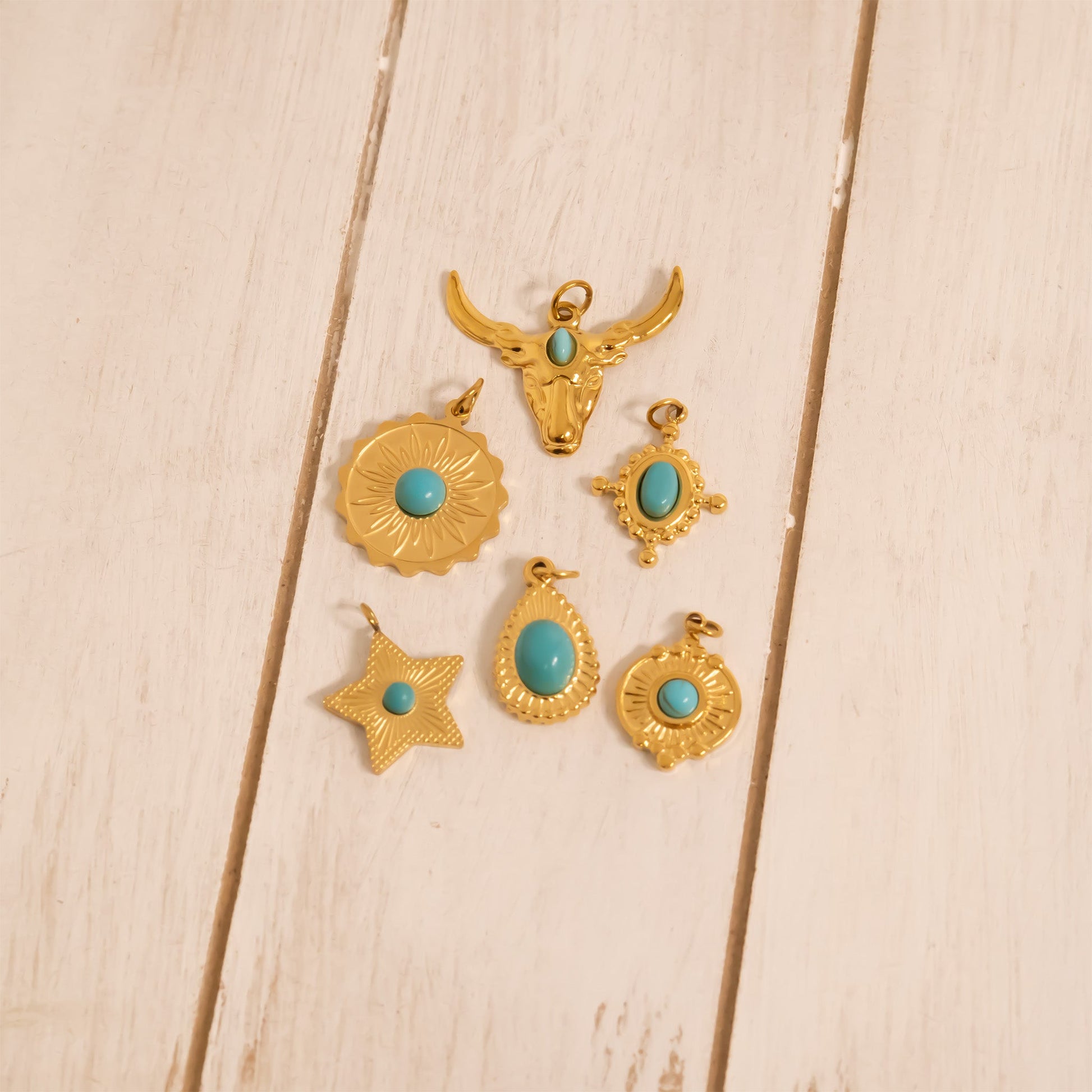 Bloom with style in this charming flower pendant, featuring a vibrant turquoise stone at its center. Crafted from durable stainless steel and finished in radiant 18K gold PVD, it’s a symbol of beauty, renewal, and joyful energy. Perfect for adding a playful pop of color to your everyday layers.