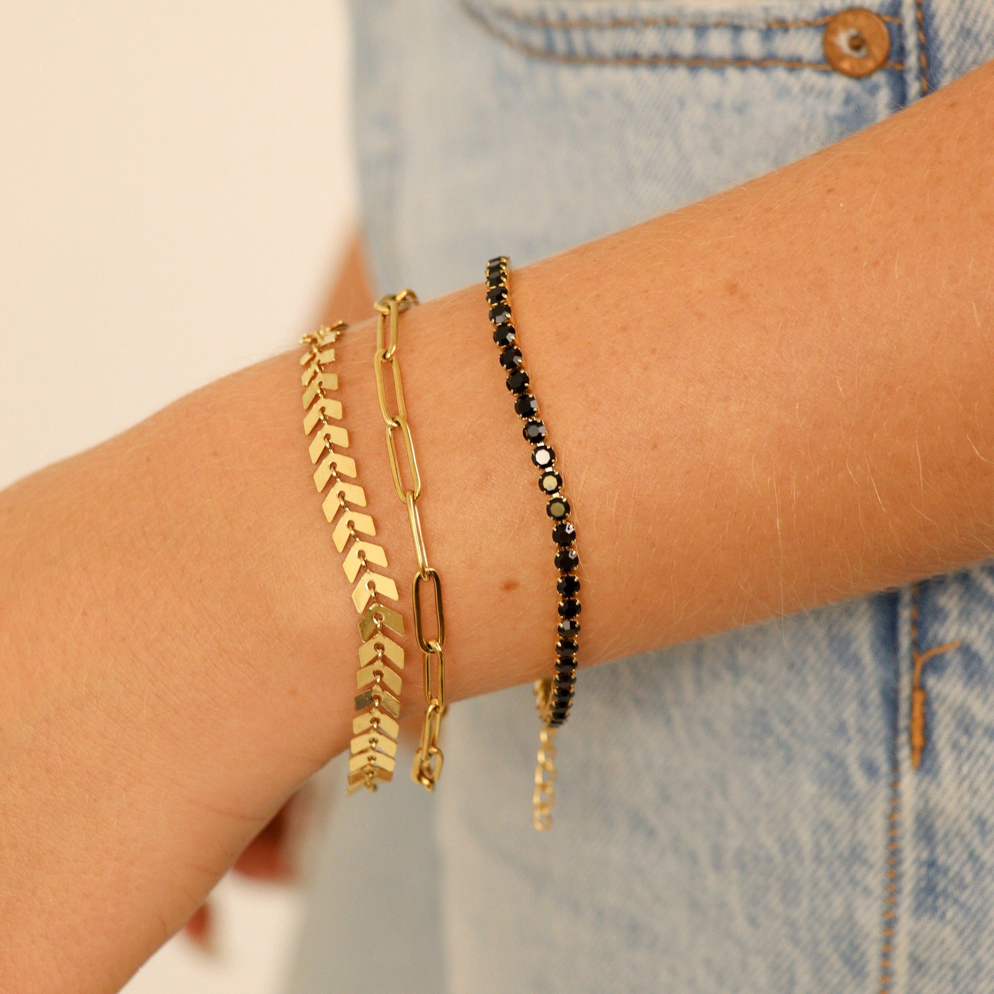 18K Gold PVD Stainless Steel Jet Rhinestone Tennis Chain Bracelet / TBR0004