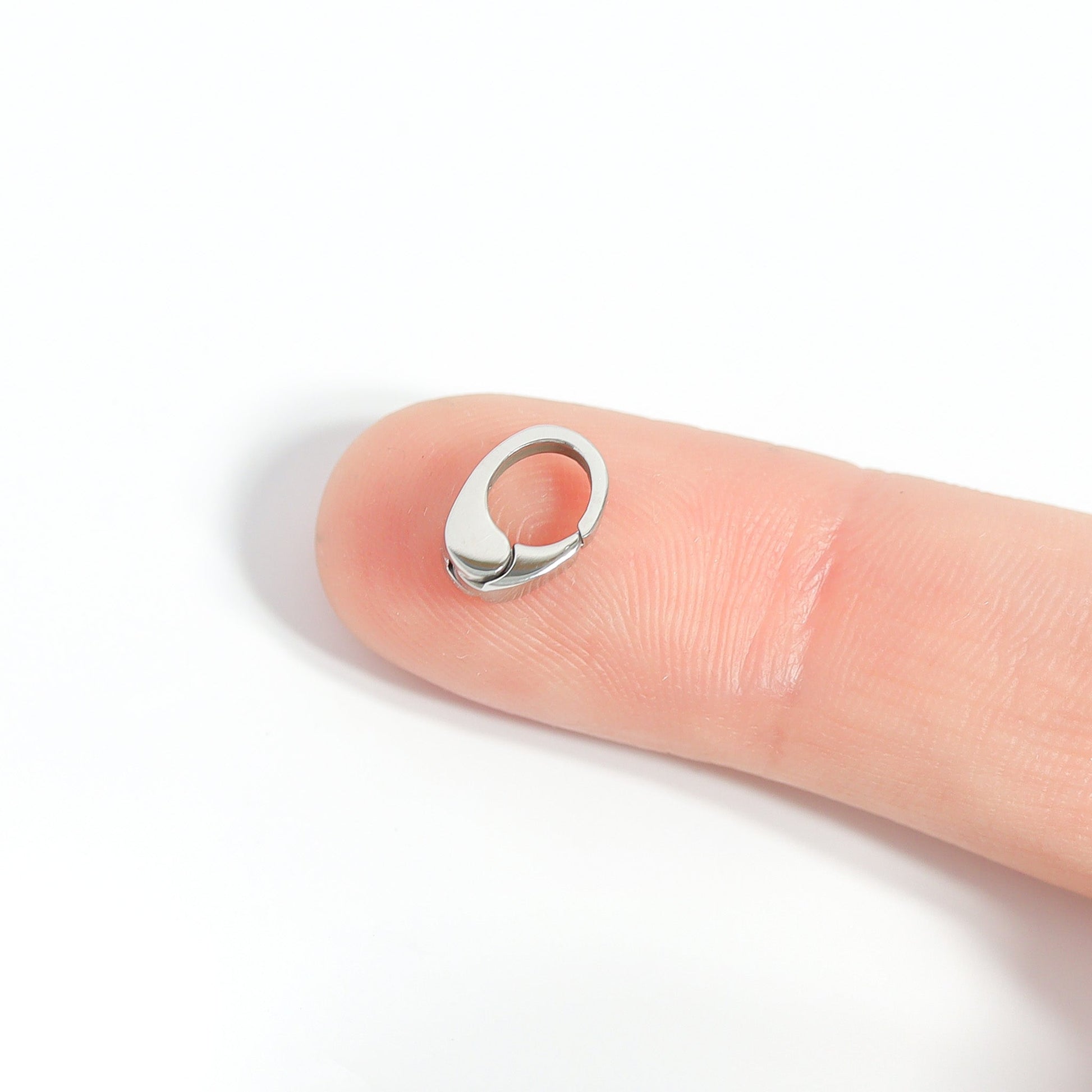 The Stainless Steel Oval Carabiner Charm Clasp features a polished finish made of 316L stainless steel with an easy-to-open, secure spring clasp.