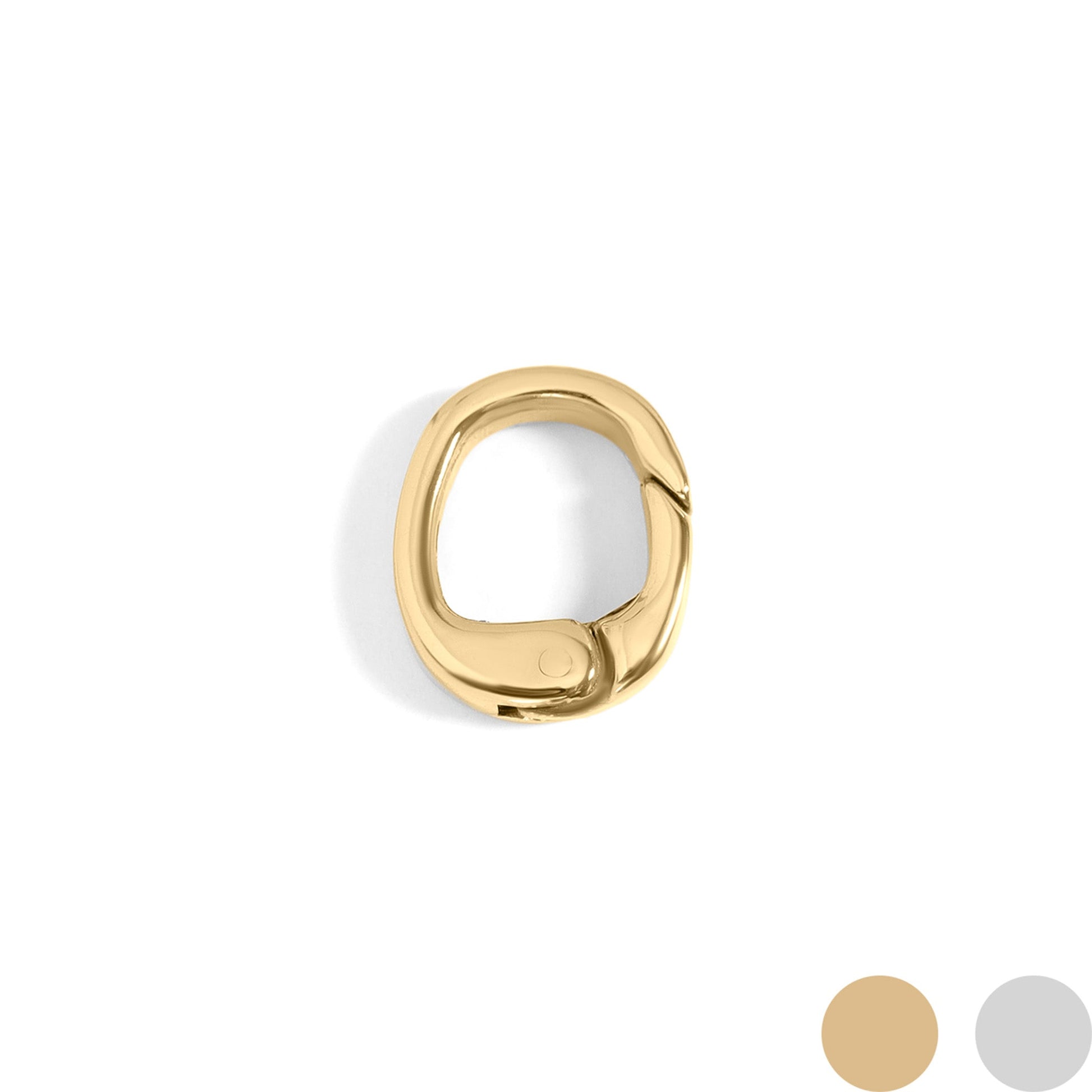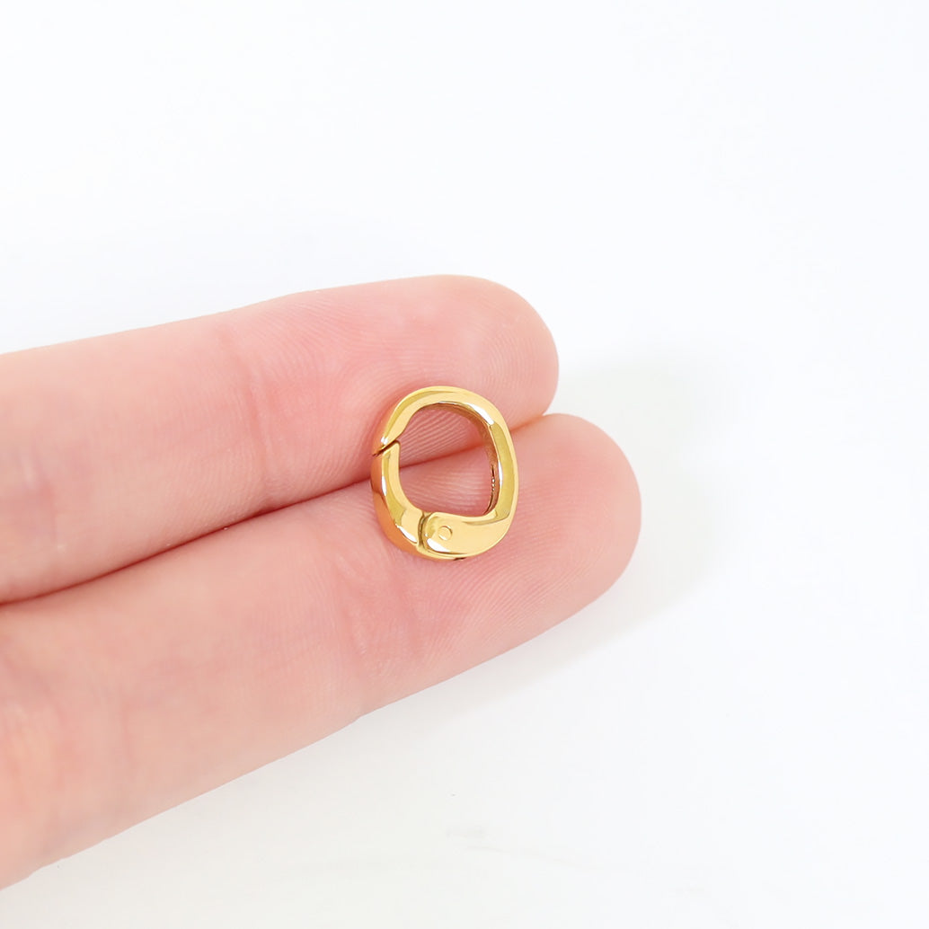 The Mini Rounded Square Carabiner Charm Clasp features a polished finish made of 316L stainless steel with an easy-to-open, secure spring clasp.