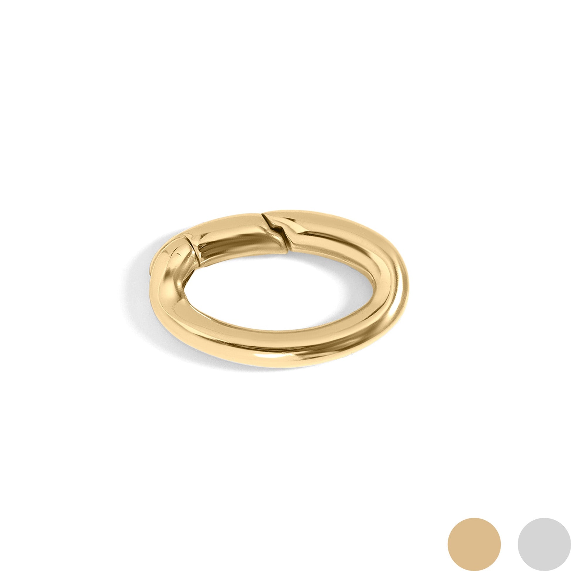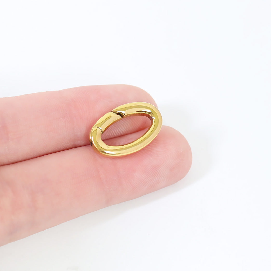 The Stainless Steel Oval Carabiner Charm Clasp features a polished finish made of 316L stainless steel with an easy-to-open, secure spring clasp.