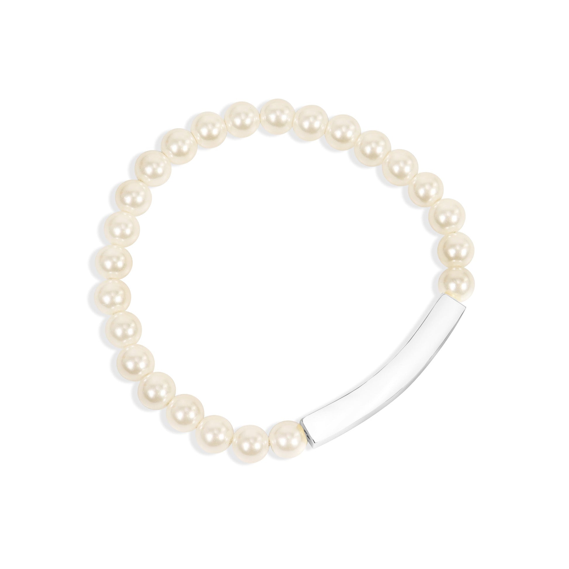 • 18K Gold PVD Stainless Steel Pearl Engravable Stretch Curved Bar Bracelets are strong, durable, and don't easily break.