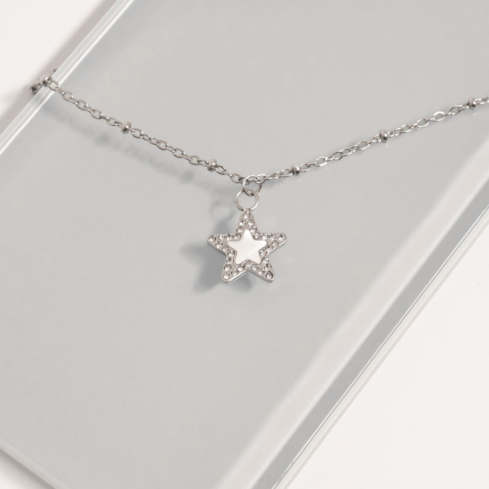 A celestial classic with a luxe twist. This crescent moon charm features a smooth pearl inlay, outlined in a sparkling border of stones. Set in durable stainless steel and finished with 18K gold PVD, it’s made to shine day or night—resisting tarnish, water, and wear with ease.