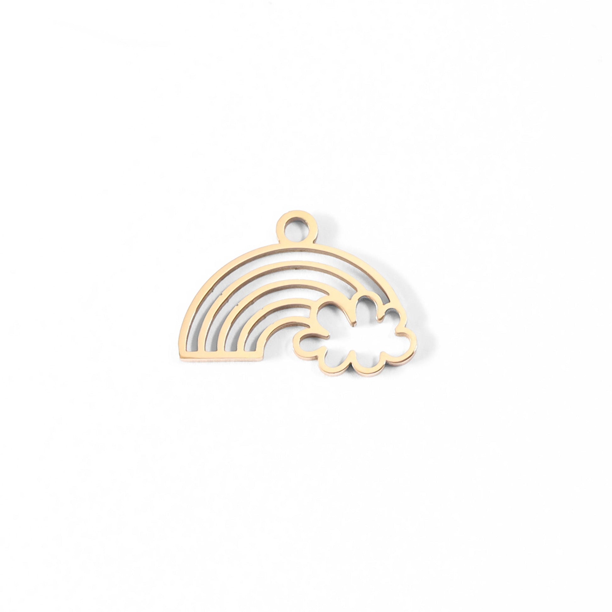The perfect golden accent for a variety of looks, our new Rainbow and Cloud Charm makes the perfect addition to your chain necklaces and bracelets for the upcoming season! Made with our proprietary blend of surgical-grade 18K Gold PVD coated stainless steel designed for everyday wear, your customers have quality, style, and comfort to cherish for years to come!