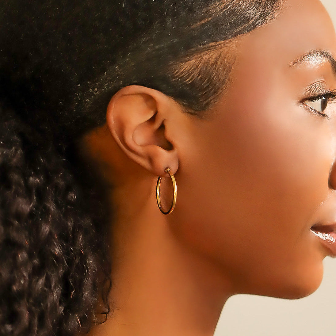 • All 18K Gold PVD Stainless Steel Round Tube Hoop Earrings are Hypoallergenic, so don't worry about any breakouts or rashes!