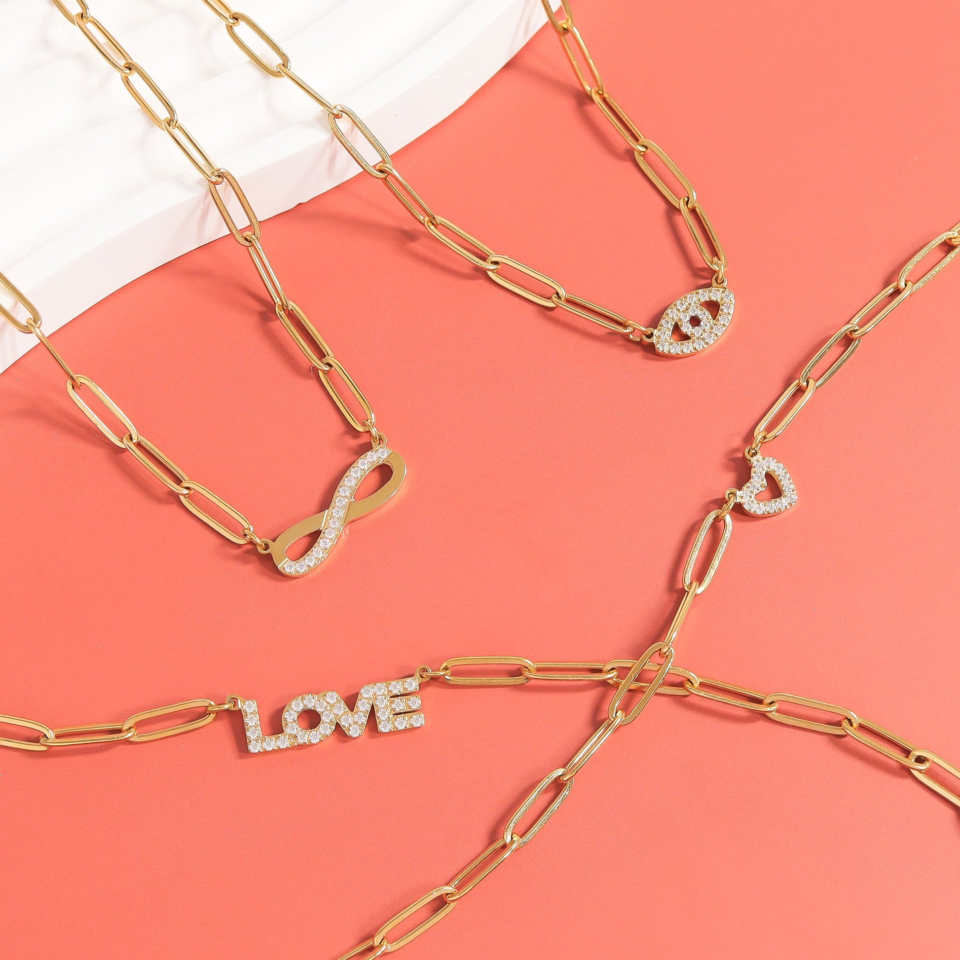 • 18K Gold PVD Stainless Steel "Infinity" Paperclip Chain Necklaces are strong and durable