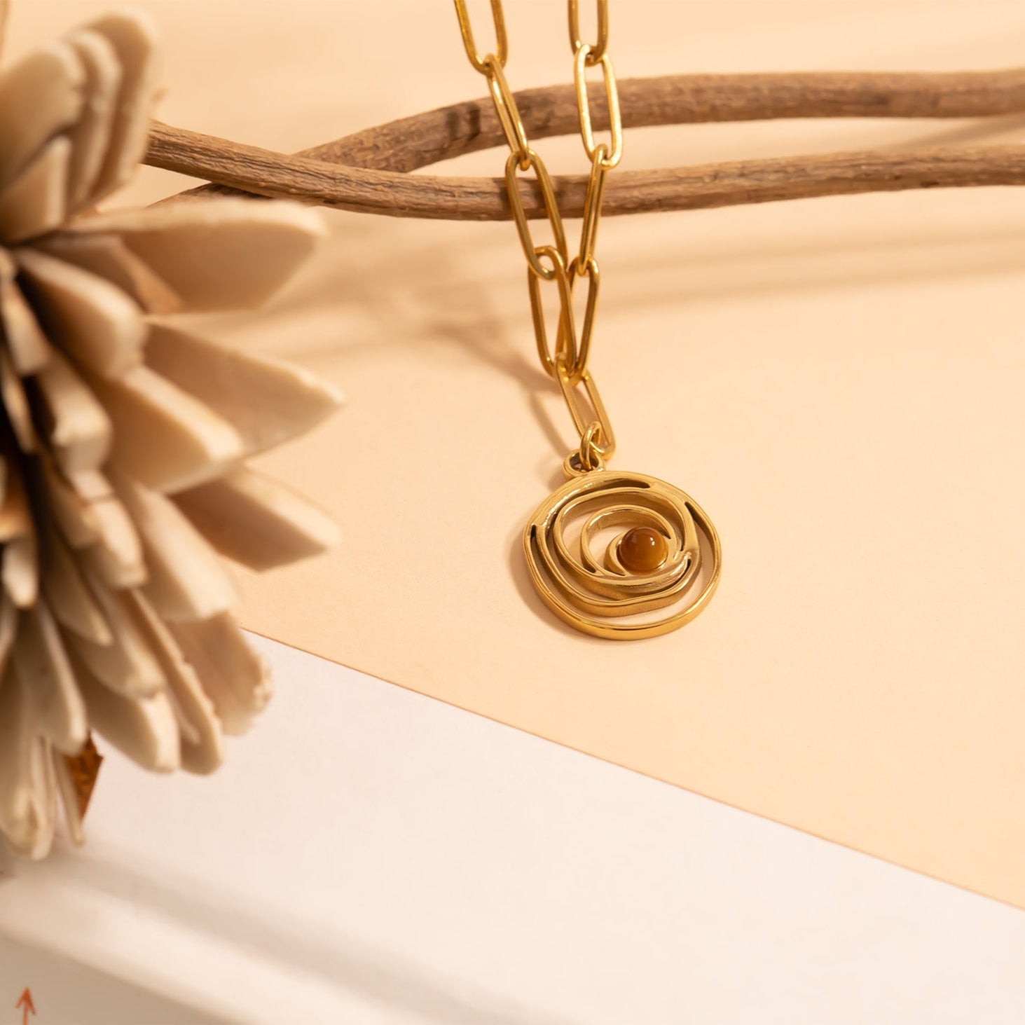 Add a touch of movement and elegance with this sculptural swirl charm. Crafted from durable stainless steel and finished in luminous 18K gold PVD, its fluid design symbolizes growth, energy, and transformation. A perfect accent for charm stacks or minimalist chains.