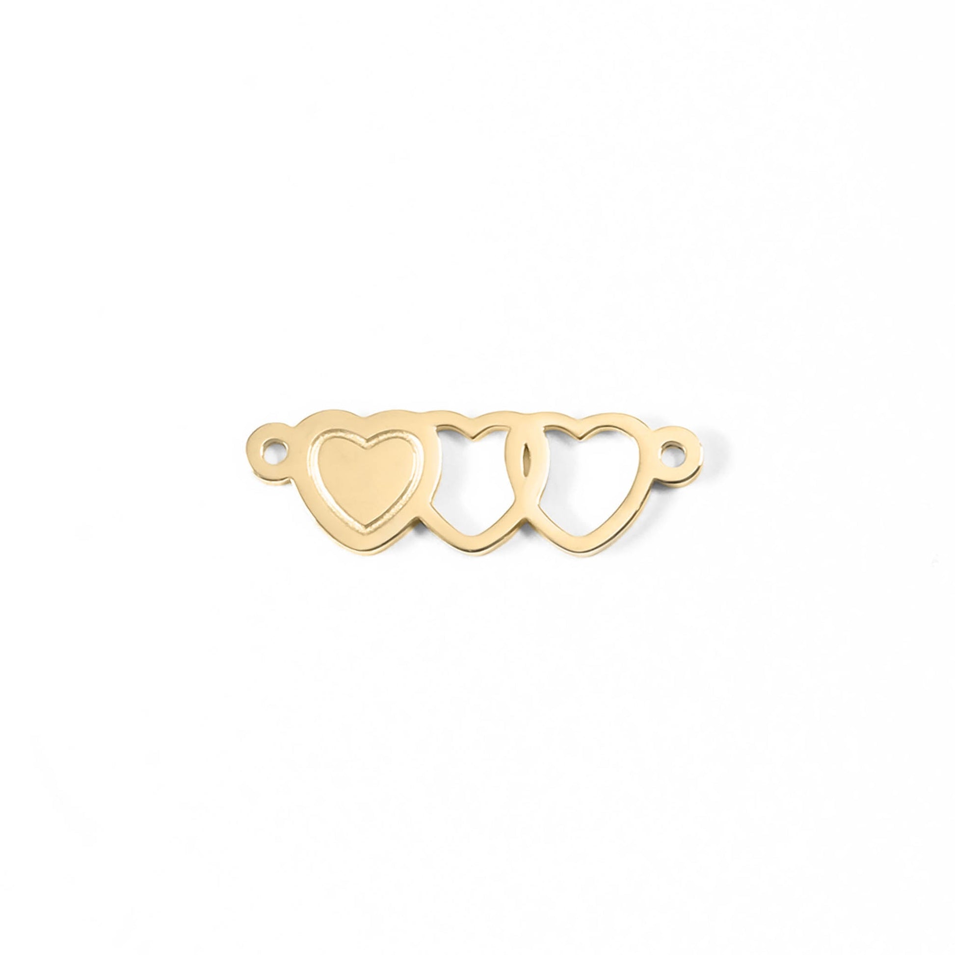 This lovely charm is crafted from high-quality 18K Gold PVD as well as stainless steel, our charms are perfect for a chain necklace, Charm bar or Charm bracelet. With a unique and classic look, the Triple Heart Charm is sure to be a fan favorite.