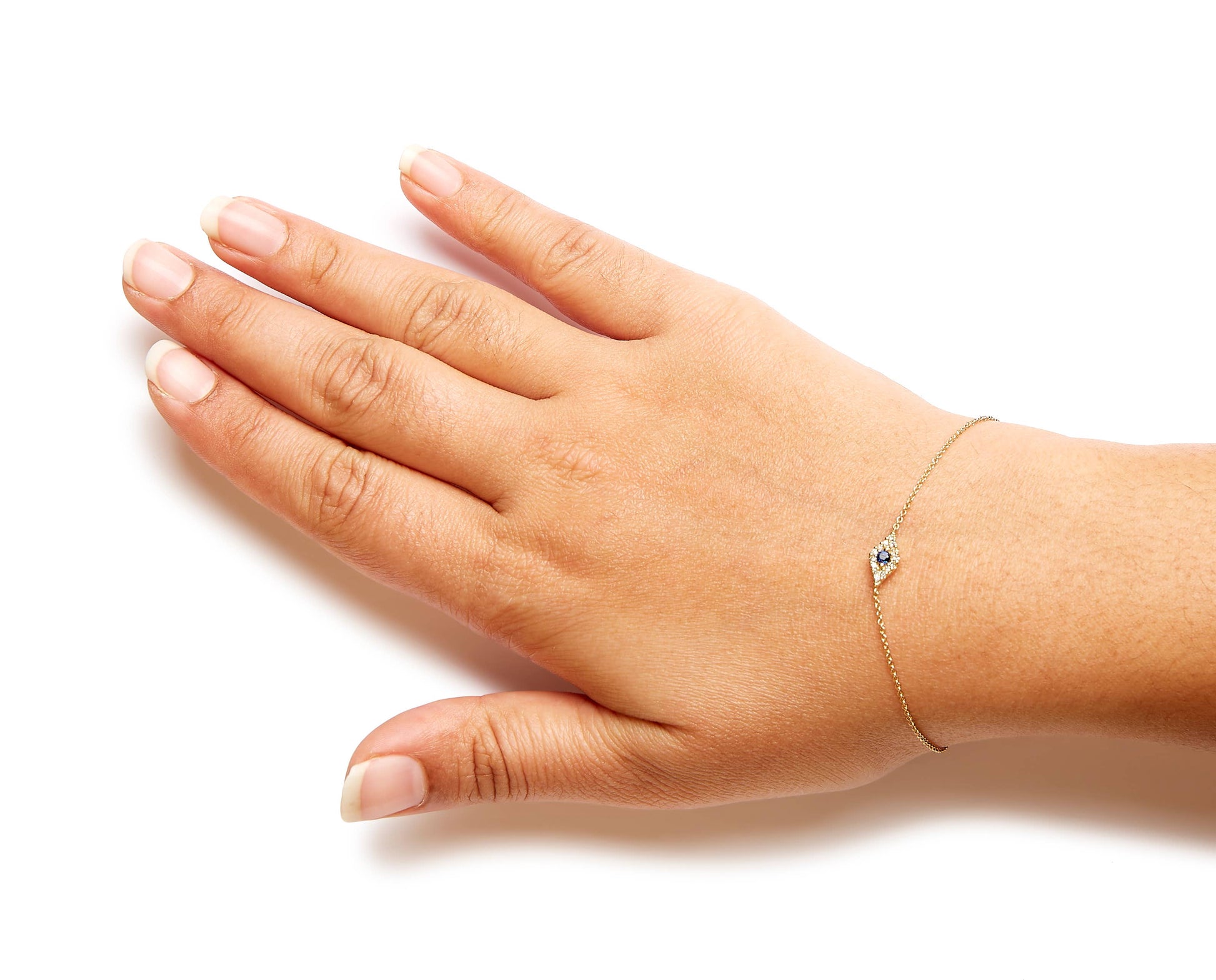 Evil Eye Station Armband aus 10-karätigem Gold mit blauem Saphir und Diamant