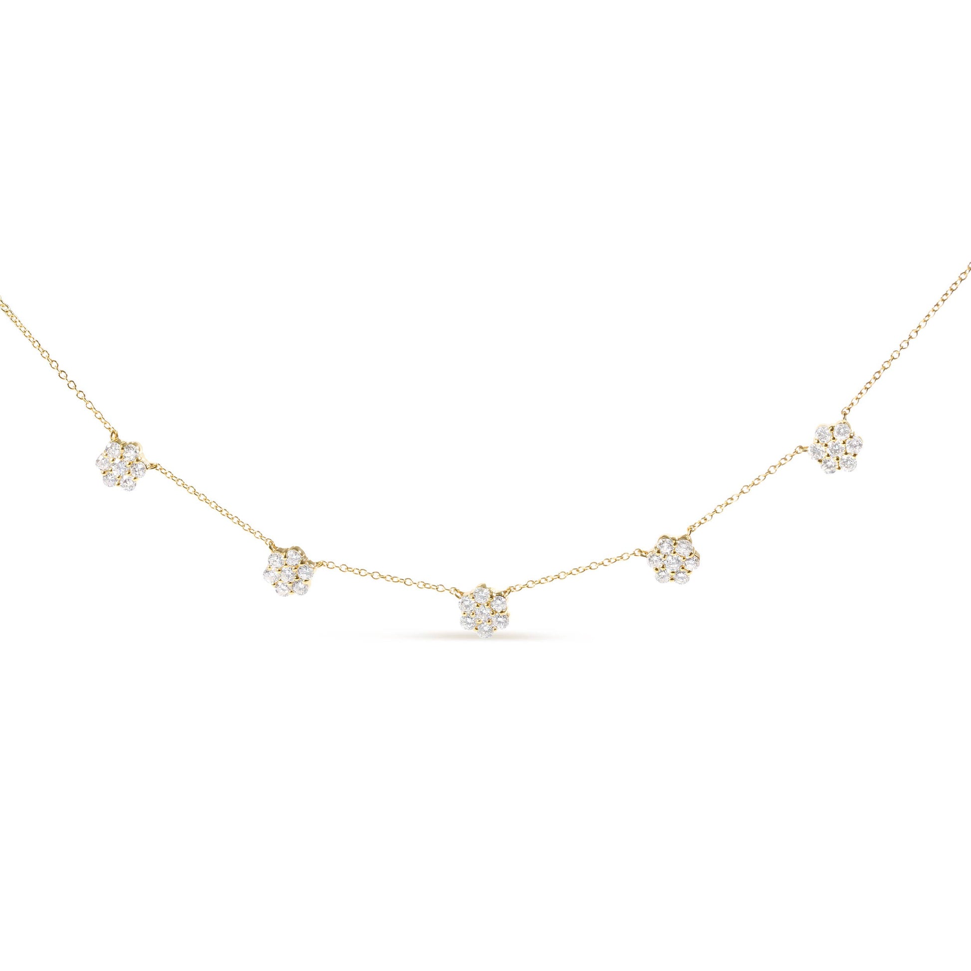 Halskette Station aus 14-karätigem Gold, 2,0 Cttw Diamond Cluster, 18 Zoll