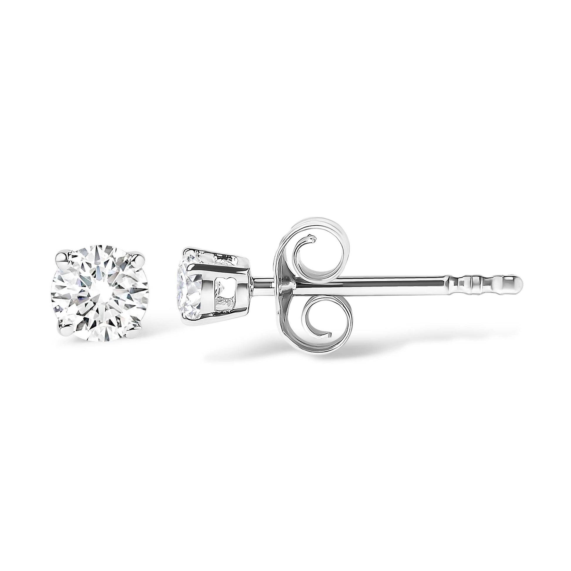 Klassische 4-polige Ohrstecker aus 925er-Sterlingsilber, 1/2 Karat, rund im Brillantschliff, laborgewachsener Diamant (Farbe F-G, Reinheit VS1-VS2). Diese exquisiten Ohrstecker sind von zeitloser Eleganz durchdrungen und bestehen aus im Labor gezüchteten Diamanten, die mit ätherischer Brillanz strahlen. Jeder Edelstein, kunstvoll in eine runde, brillante Form geschliffen, strahlt in F-G-Farbe und VS1-VS2-Klarheit und fängt das Licht in einem Tanz ein, der an Morgentau unter den ersten Sonnenstrahlen erinnert. Diese Diamanten sind präzise in einer traditionellen 4-poligen Anordnung gefasst und in 0,925er-Sterlingsilber eingefasst, das durch eine Rhodinierung noch verstärkt wird, die einen dauerhaften Glanz und Widerstandsfähigkeit gegen Witterungseinflüsse verspricht.