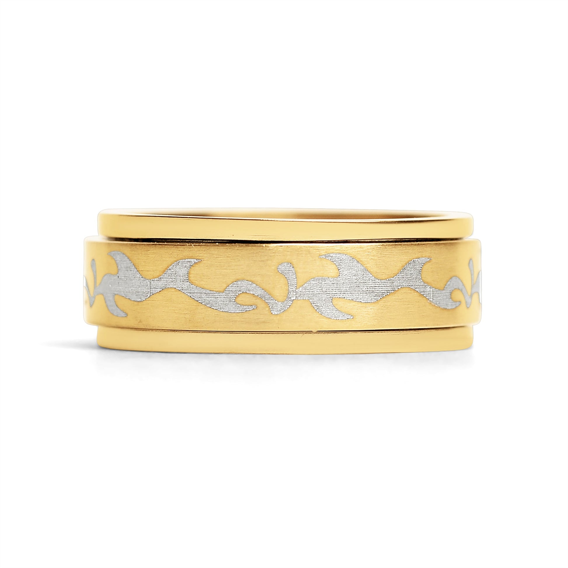 The Wholesale Smoke 18K Gold PVD Coated Stainless Steel Spinner Ring is made of 18K gold and with a proprietary blend of 316L Surgical Steel.