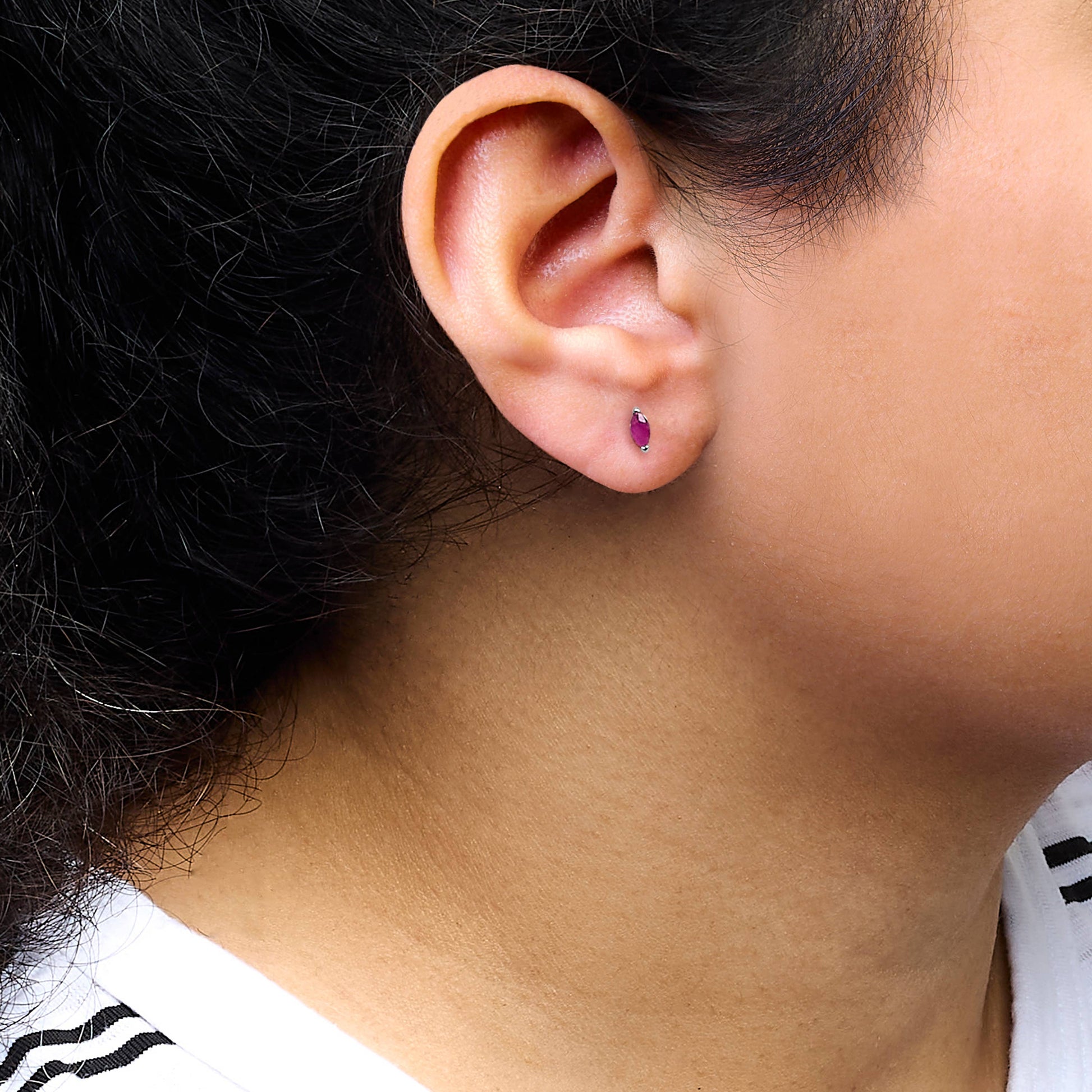 Solitär-Ohrstecker aus 925er-Sterlingsilber, hergestellt aus 1/2 Karat, rosa Rubin-Edelstein. Verhüllen Sie Ihre Ohren in die funkelnde Pracht dieser Solitär-Ohrstecker aus 925er-Sterlingsilber, die jeweils mit einem im Labor hergestellten rosafarbenen Rubin im Marquiseschliff verziert sind. Die Lebendigkeit dieser sorgfältig farbbehandelten Edelsteine bietet einen Einblick in eine Welt, in der Eleganz mit moderner Handwerkskunst verschmilzt. Diese Ohrringe befinden sich in einer sicheren Fassung mit zwei Zinken und sind mit Rhodium für zusätzliche Brillanz und Haltbarkeit versehen. Sie erstrahlen in einem Glanz, der fasziniert und verzaubert.