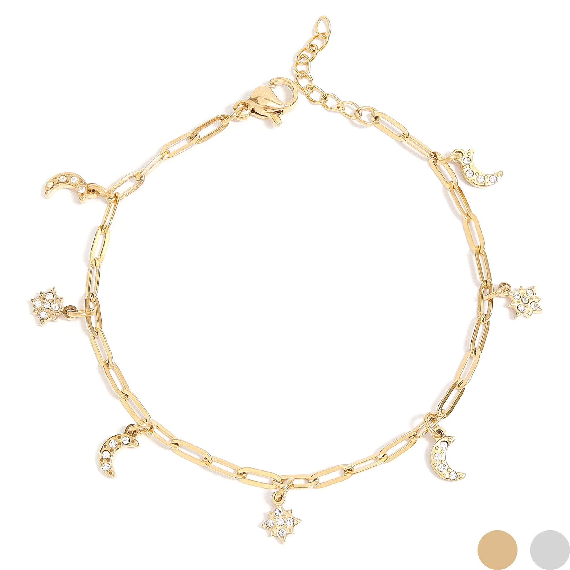 18K Gold PVD Stainless Steel Moon & Star Charm Bracelet / BRJ1009
