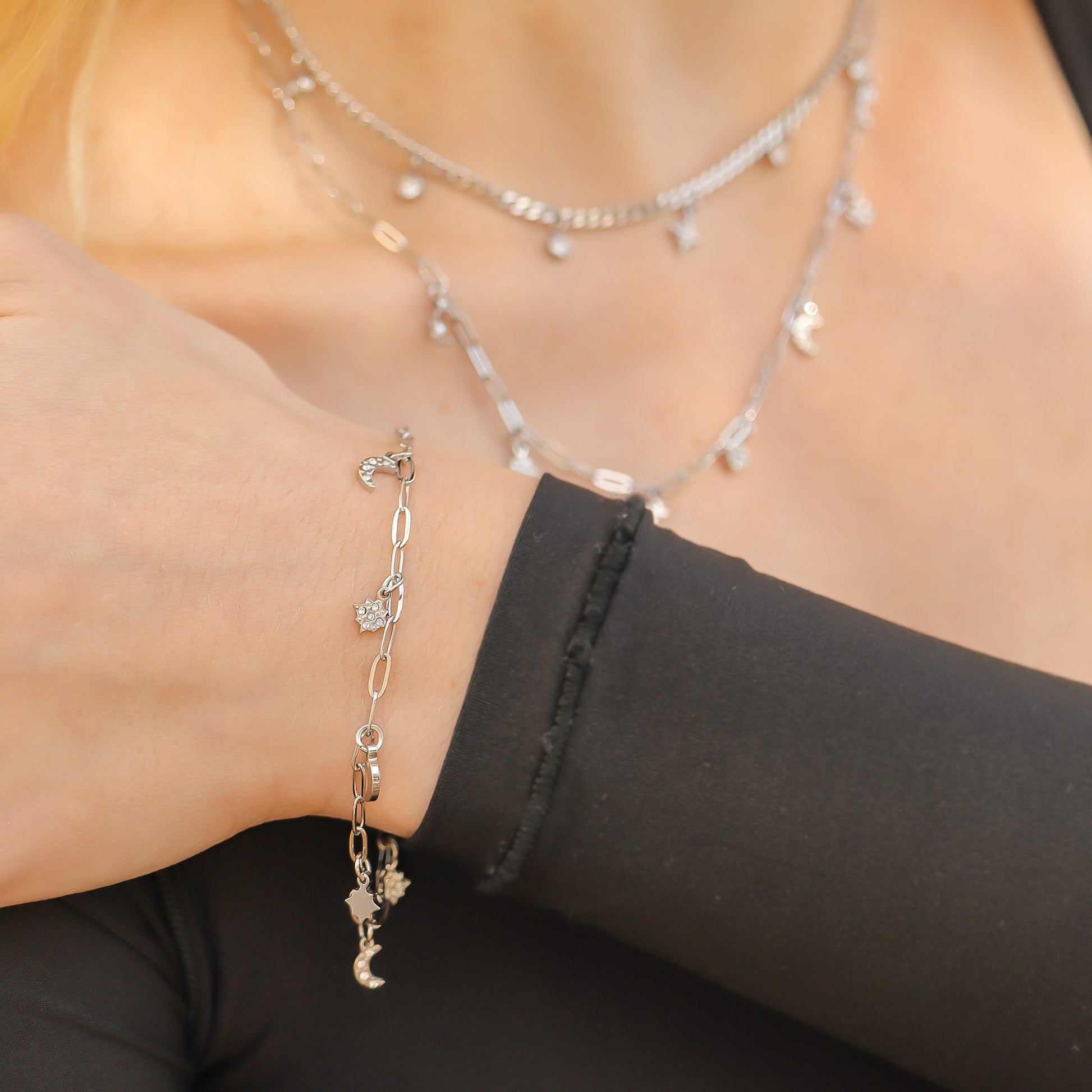 • Stainless Steel Moon and Compass North Star Paperclip Chain Charm Bracelets are strong and durable.