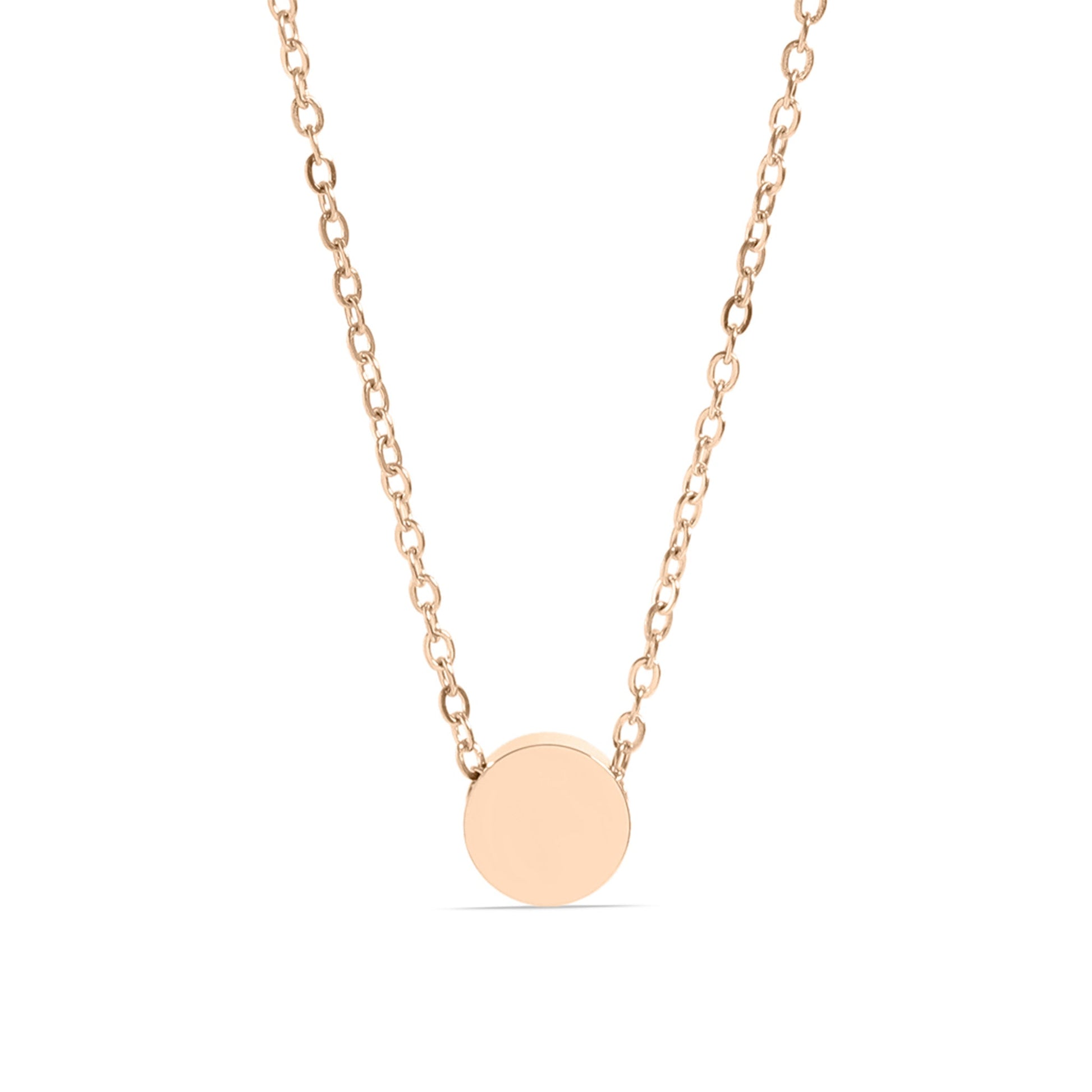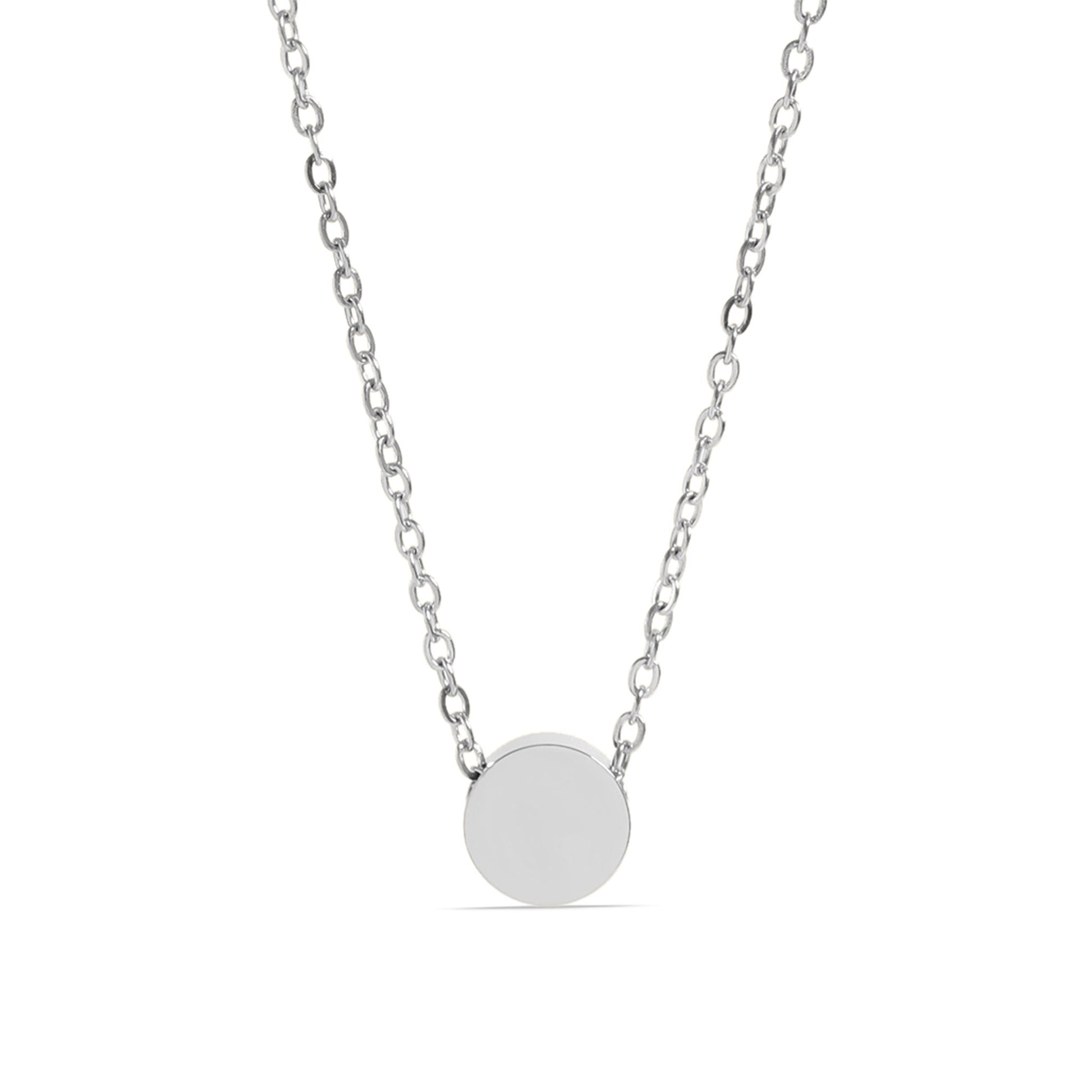 The perfect necklace for making a buildable, personalized look. The stainless steel mini circle necklace offers a minimal and sleek stylishness that is perfect for any occasion. Its circle-shaped charm and polished finish presents a luxurious shine that is a must-have for customers of all ages. The charm's blank surface is great for engraving, giving you the flexibility to personalize with your designs or special requests from your customers.