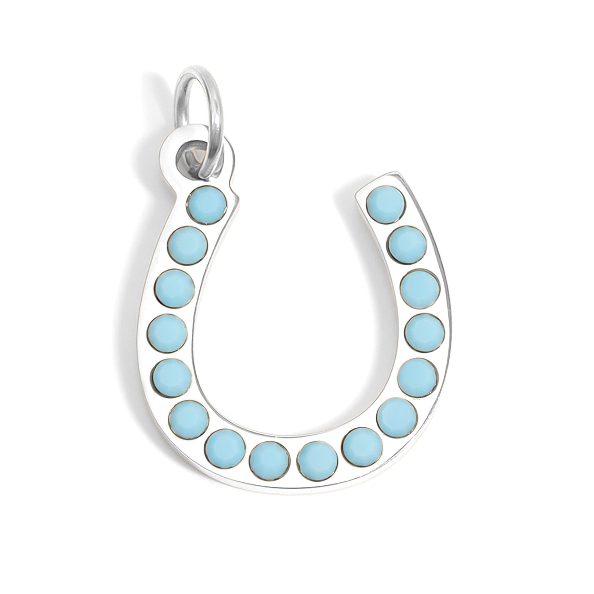 Invite luck and style into your life with the Stainless Steel Turquoise Stone Horseshoe Charm. Designed with a sleek stainless steel finish, this charm features a vibrant turquoise stone, symbolizing protection and positive energy. The classic horseshoe shape, long regarded as a symbol of good fortune, adds a timeless and meaningful touch to your jewelry collection.